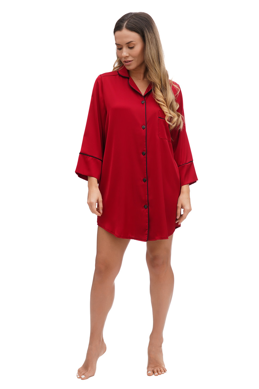 Коротка шовкова нічна сорочка на гудзиках бордовий Martelle Lingerie 103
